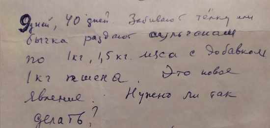 Возвратимся к началу моего поста. В архиве моего дедушки я нашла записку, переданную ему, судя по всему, интеллигенцией и старейшинами в одном из аулов.  Мой дедушка в 1950-1970-е гг. был заведующим кафедрой педагогики и психологии Адыгейского государственного педагогического института, и, как все профессора и доценты в советское время, ездил в аулы Адыгеи с лекциями. Тематика лекций была разнообразной – от актуальной политической повестки и до обсуждения традиций и обычаев. Предполагаю, что во время такой лекции ему была передана записка, в которой было написано то, что позволяет предположить, что пакеты – это новое для 1960-х гг явление.