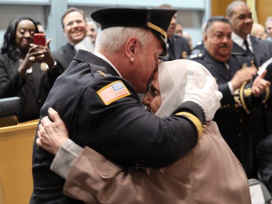 На фото - заместитель шерифа округа Пассейик со своей мамой после церемонии присяги.