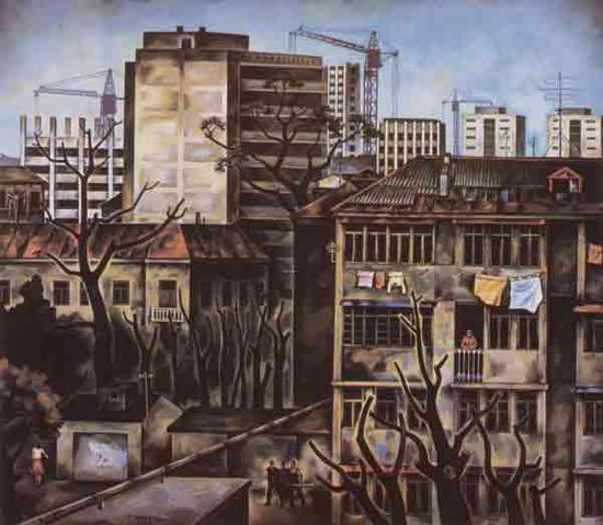В 1960-1970-е годы в работах кавказских художников уже не так много «кавказского» - там почти нет места обычным людям, зато есть масштабные стройки и вообще тема индустриального прорыва, преобразующего традиционный Кавказ.