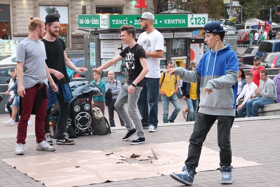 А эта молодежь просто пришла, расстелила кусок старого порванного линолеума, и начала танцевать, причем наличие или отсутствие зрителей их вообще не смущало.