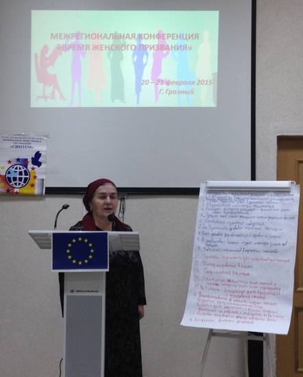 20 и 21 февраля, в г. Грозный, Чеченской региональной общественной организацией РСПЦ «Синтем», была организована и проведена Межрегиональная конференция «Время женского призвания». Координатор программного отдела «Синтем» Инна Айрапетян, пригласила нас принять участие в работе Конференции, совпавшей с 10-летним юбилеем деятельности их организации. Всего участие в Конференции приняло около 80 человек, среди которых были представители общественных организаций из пяти субъектов Северного Кавказа, журналисты, а так же представители органов федеральной и региональной власти.