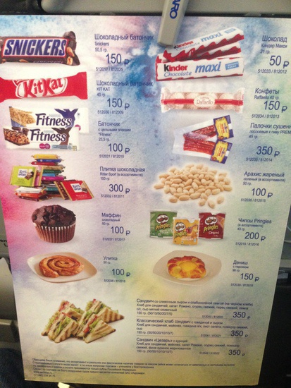 Так вот сегодня питания в самолете не было вообще, если быть совсем точным, любой желающий мог купить себе на выбор из имеющихся продуктов то, что ему понравится. Конечно же, это никак не связано с моей статьей, насколько я понял, питание в самолетах в нашей стране по какому-то распоряжению с недавнего времени положено только в том случае, если полет превышает четырех часовую длительность.