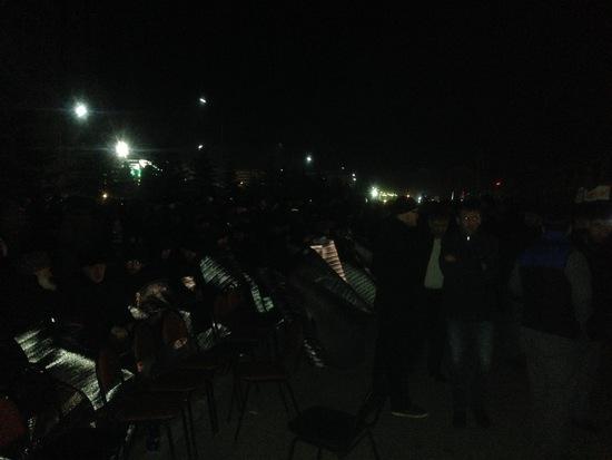 Митинг продолжается. К 23-30 на площади в Магасе остаются около трех тысяч жителей республики, еще около полутора тысяч человек отогреваются и отдыхают в расположенных в округе домах и припаркованных автомобилях. Организаторы митинга пока еще не получили ответ на поданное ими уведомление о продлении сроков проведения митинга.