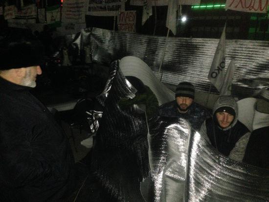 Митингующие готовятся к ночевке.