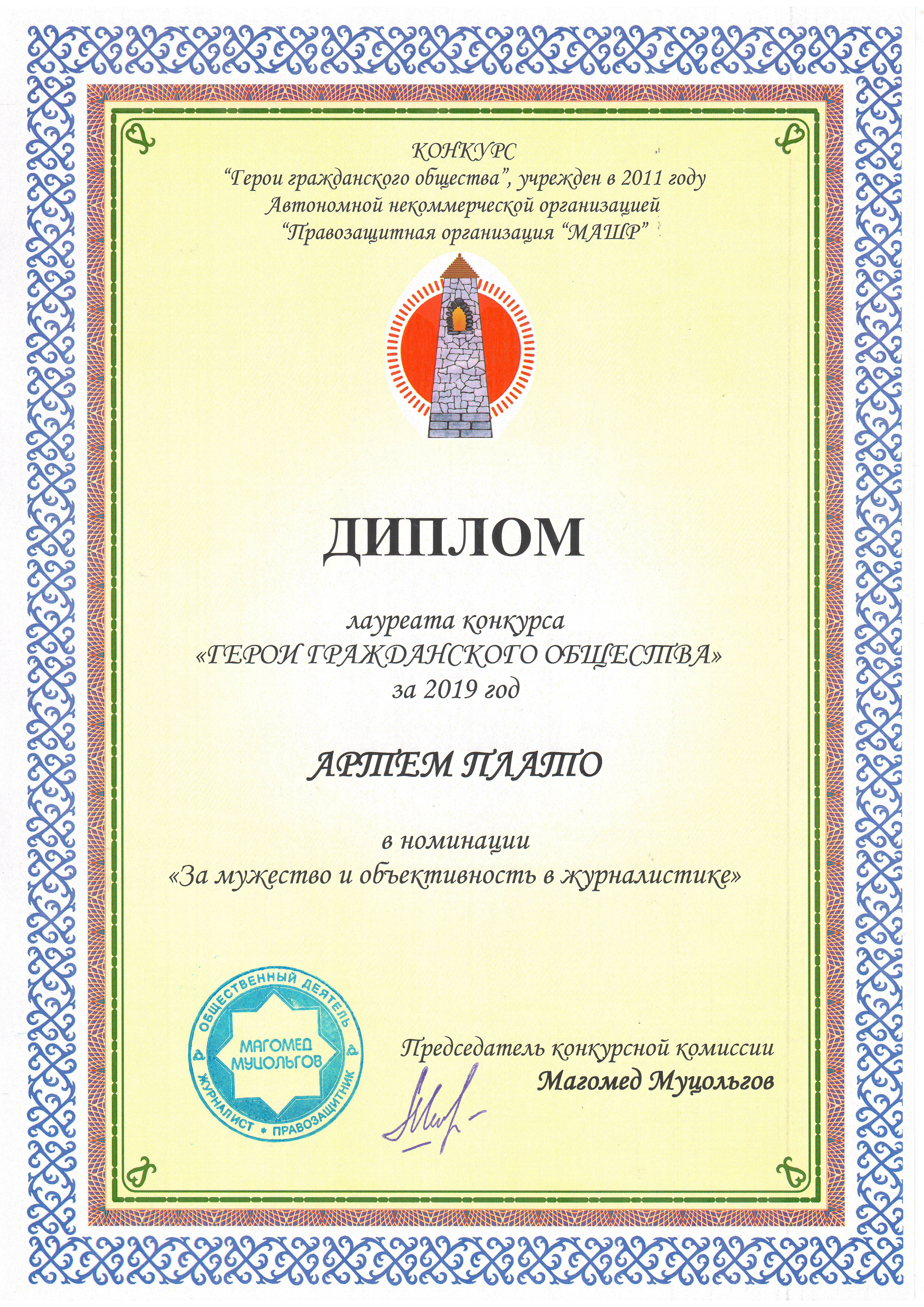 Сегодня я расскажу об Артеме Плато, он награжден в номинации «За мужество и объективность в журналистике».