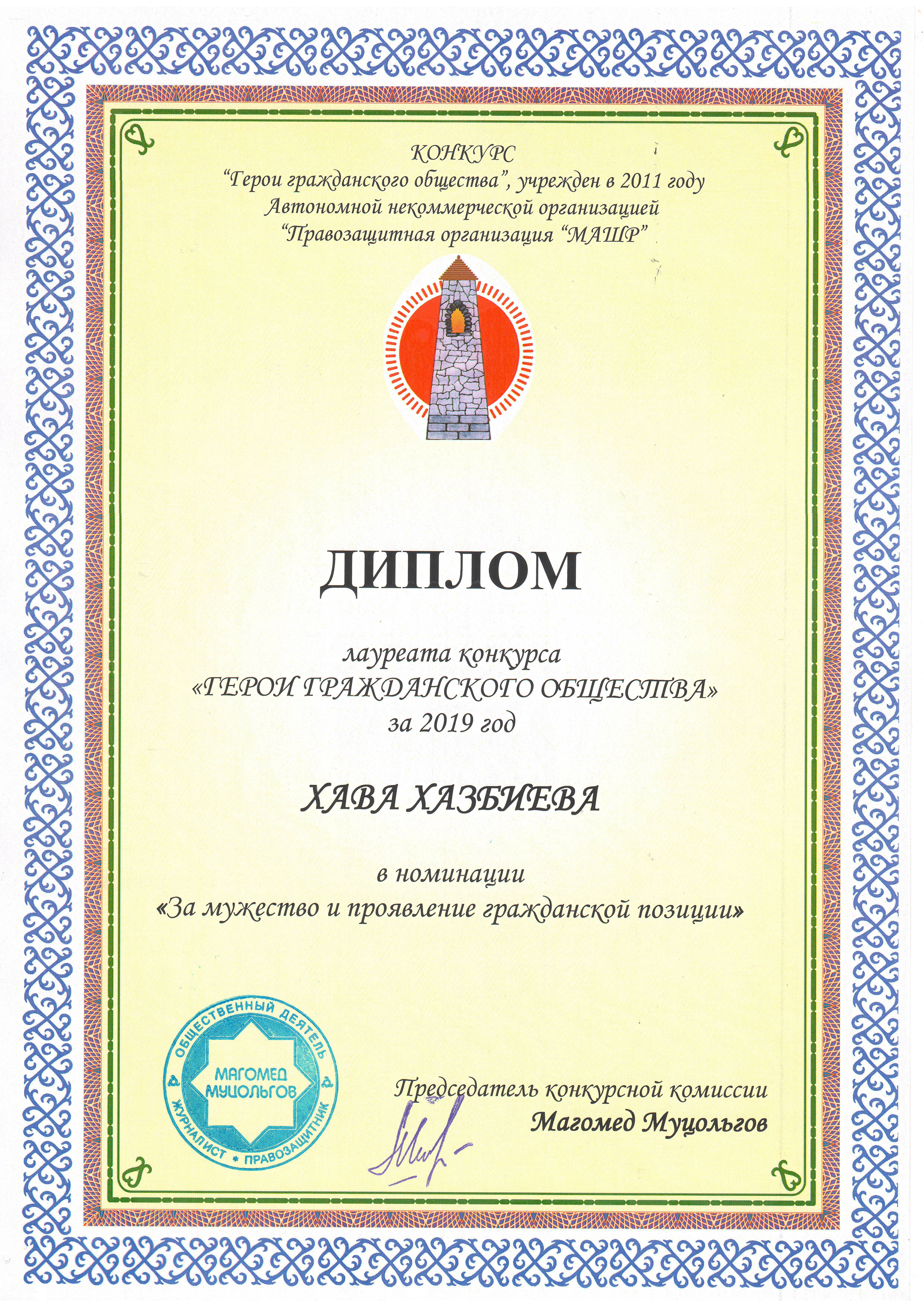20 января были опубликованы результаты ежегодного Конкурса «Герои гражданского общества», учрежденного в 2011 году, Правозащитной организацией «МАШР». О победителях Конкурса я уже писал на страницах своего блога (Названы имена Героев гражданского общества Ингушетии 2019 года https://www.kavkaz-uzel.eu/blogs/342/posts/41383). Как я и обещал, я продолжаю рассказ о каждом лауреате Конкурса.