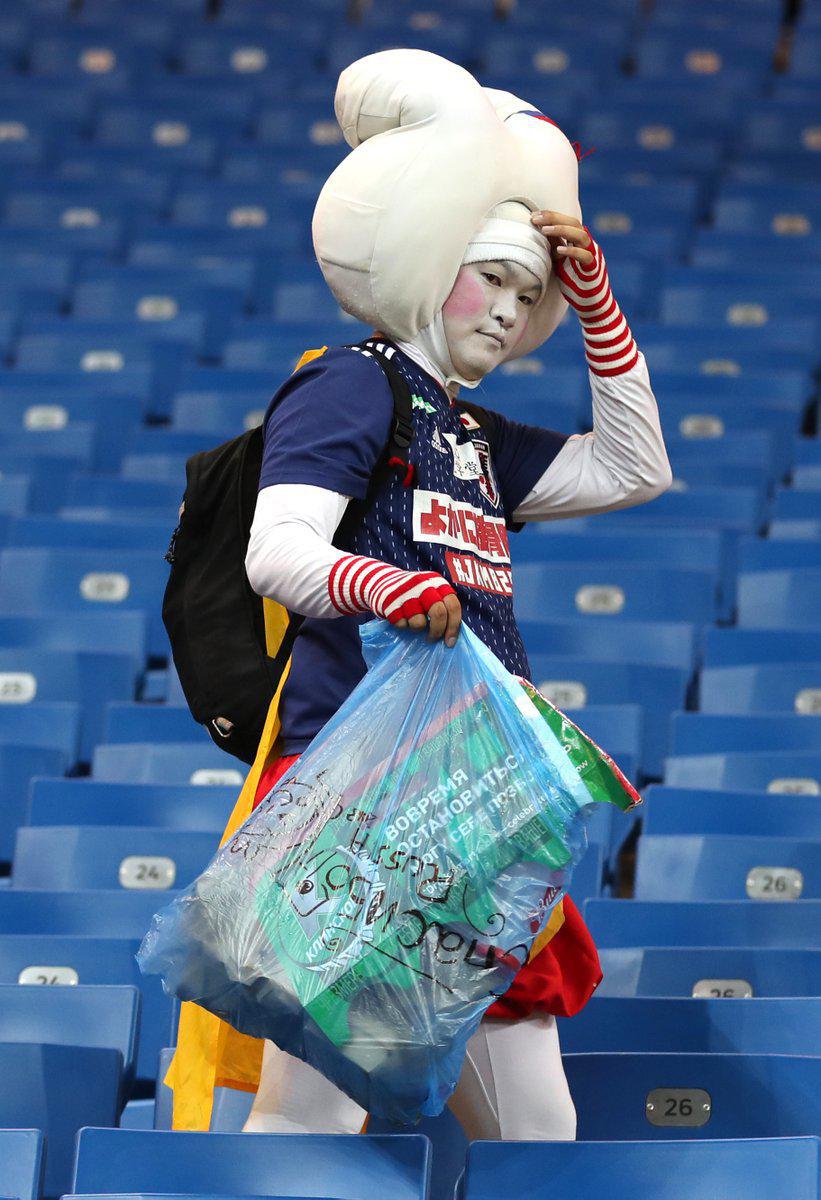 Болельщики сборной Японии по традиции убрали за собой мусор на «Ростов-Арене» после матча 1/8 финала ЧМ-2018 с Бельгией (2:3).