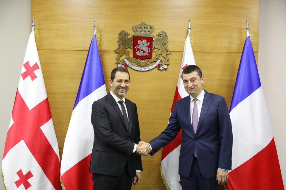 Из видеоматериала Первого ТВ Грузии: министры ВД Грузии и Франции  Георгий Гахария и  Кристоф Кастанер.