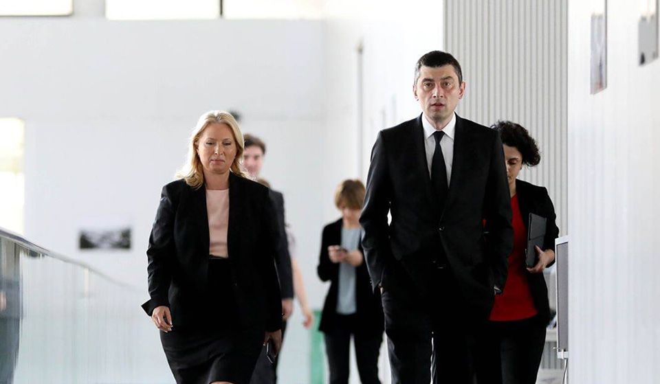 Премьер - министр Грузии Георгий Гахария и министр экономики Натия Турнава. Из видеоматериала Первого ТВ.