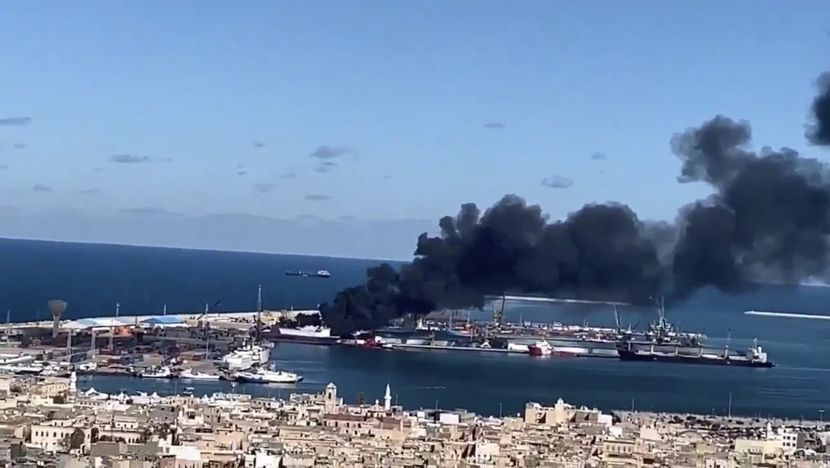 Эти кадры ( скриншот) облетели на днях весь мир, они не официальные, но,  никто пока их не опровергал.В порту Триполи авиация ЛНА накрыла турецкий корабль с амуницией и боеприпасами. Источник: https://pbs.twimg.com/media/ERETBkoXUAAwlf_?format=jpg Более подробно читайте здесь: https://colonelcassad.livejournal.com/5647125.html