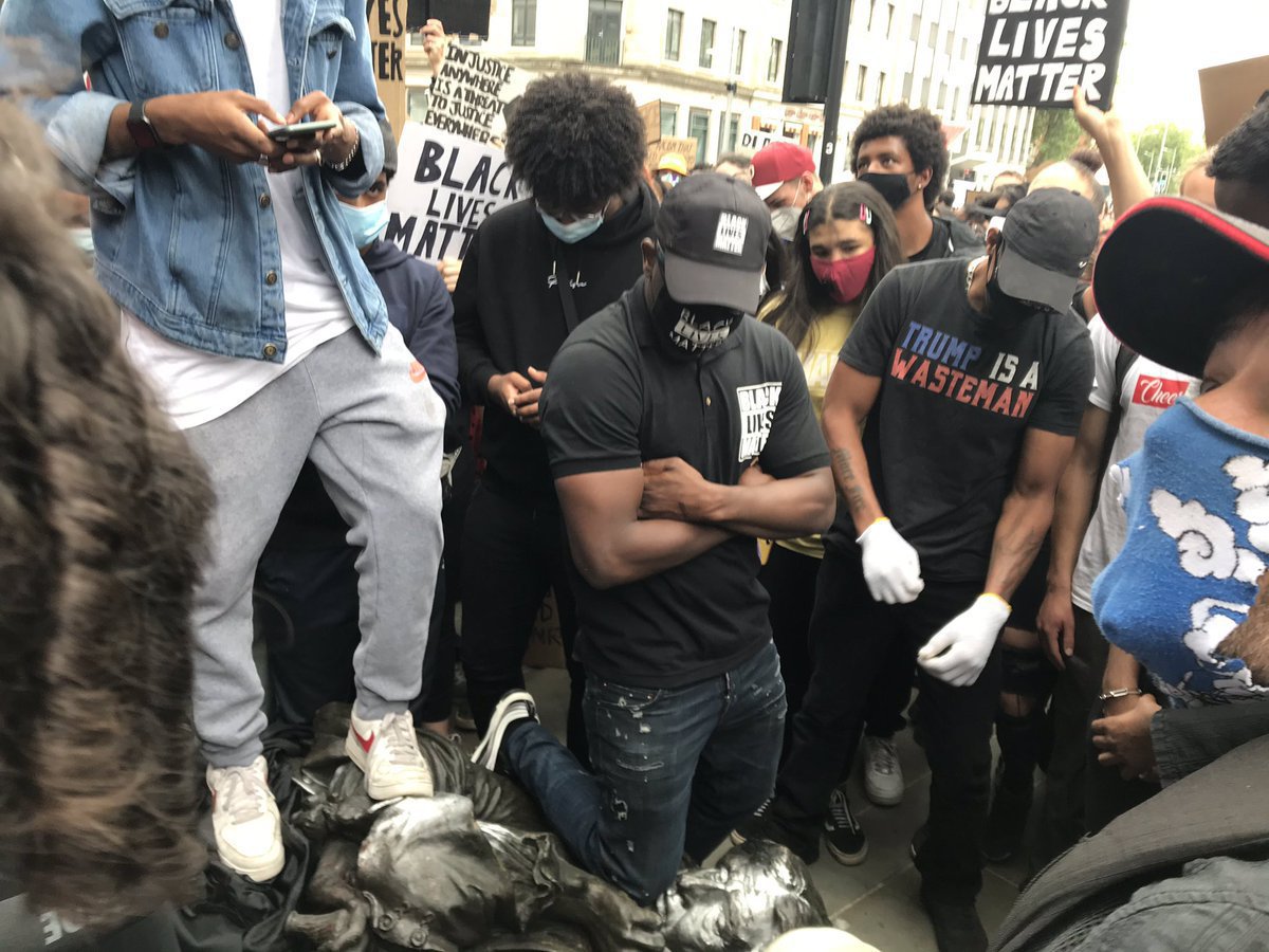 https://pbs.twimg.com/media/EZ6k8eVXsAAaeVS?format=jpg& Не хочу у себя - развивать тему того, как и кто крушит памятники людям, которых уважают очень многие граждане США. Разумеется, в будущем, можно все роли великих людей прошлого, давать в фильмах - играть чернокожим актёрам, чтобы те не комплексовали. Но, какому проценту граждан - в реальности, нравится такая неловкая поза? Или, эта поза - правильная?