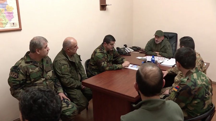 Премьер-министр Армении Никол Пашинян. Справа - в очках, лидер непризнанной НКР Араик Арутюнян. Источник: https://pbs.twimg.com/media/EjpR5XkWkAILmoF?format=jpg&