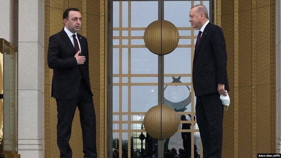 Источник: AFP   Лидеры Грузии и Турции -  Эрдоган и Гарибашвили. (архив)