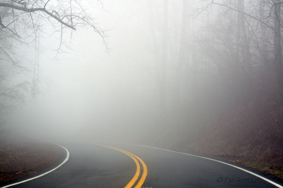 Очень сложно предугадать при таком тумане, особенно, когда едешь на высокой скорости,  что ждёт за поворотом.