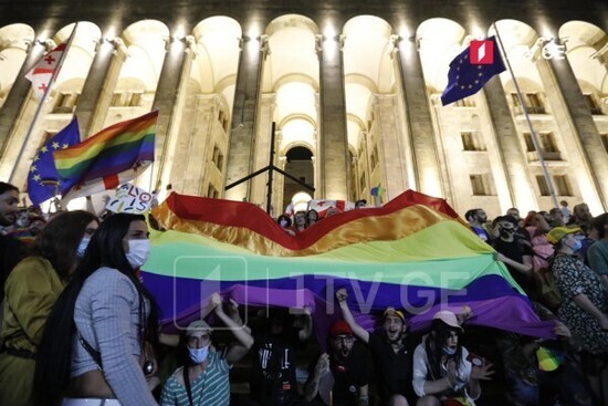 Иллюстрация к прошлогоднему материалу из Грузии. Источник: https://1tv.ge/ru/news/situacija-na-prospekte-rustaveli-nakalilas-posle-togo-kak-byl-razvernut-flag-lgbt/