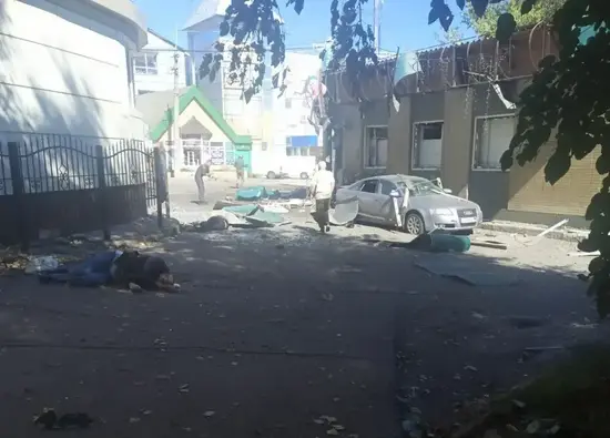 Из-за украинского обстрела на площади Бакинских Комиссаров больше десятка трупов. Фото: Телеграм мэра Донецка Алексея Кулемзина. "Этот район постоянно подвергается атакам, в результате гибнут дети. Как и сегодня - двое детей среди погибших, по предварительным данным", - написал он.