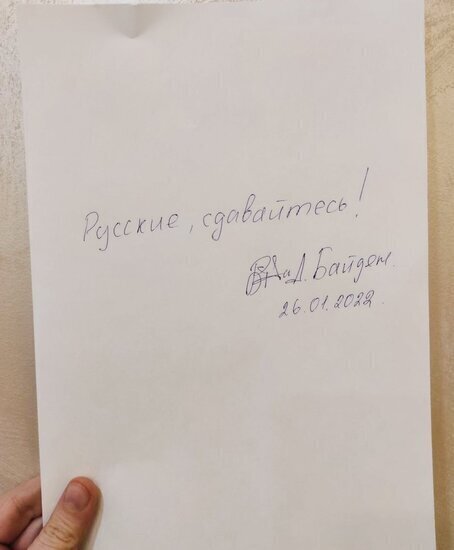 Взято из: https://colonelcassad.livejournal.com/7405253.html Имхо, пусть шуточная, но самая красноречивая иллюстрация к ответу США на предложения (ультиматум) РФ годичной давности
