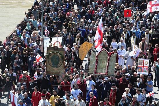 Десятки тысяч обычных, консервативных, традиционных грузин и грузинок, вышли, в том числе, имхо, выражая лояльность к этой правой стороне, на стороне которой, в этом, думаю, ни у кого нет сомнений, Грузинская Православная Церковь.