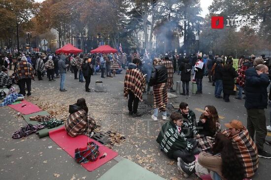 Полицейские разобрали в Тбилиси палаточный городок, где активисты двое суток проводили акцию с требованием отменить результаты выборов в парламент.
