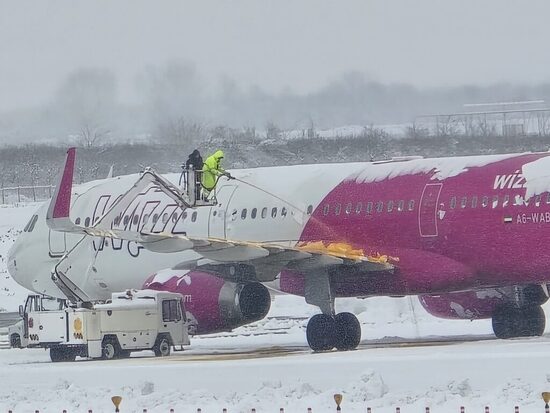 По информации Объединения аэропортов Грузии, несмотря на сильный снегопад, соответствующие службы Международного аэропорта Кутаиси своевременно проводят процедуры против обледенения воздушных судов.