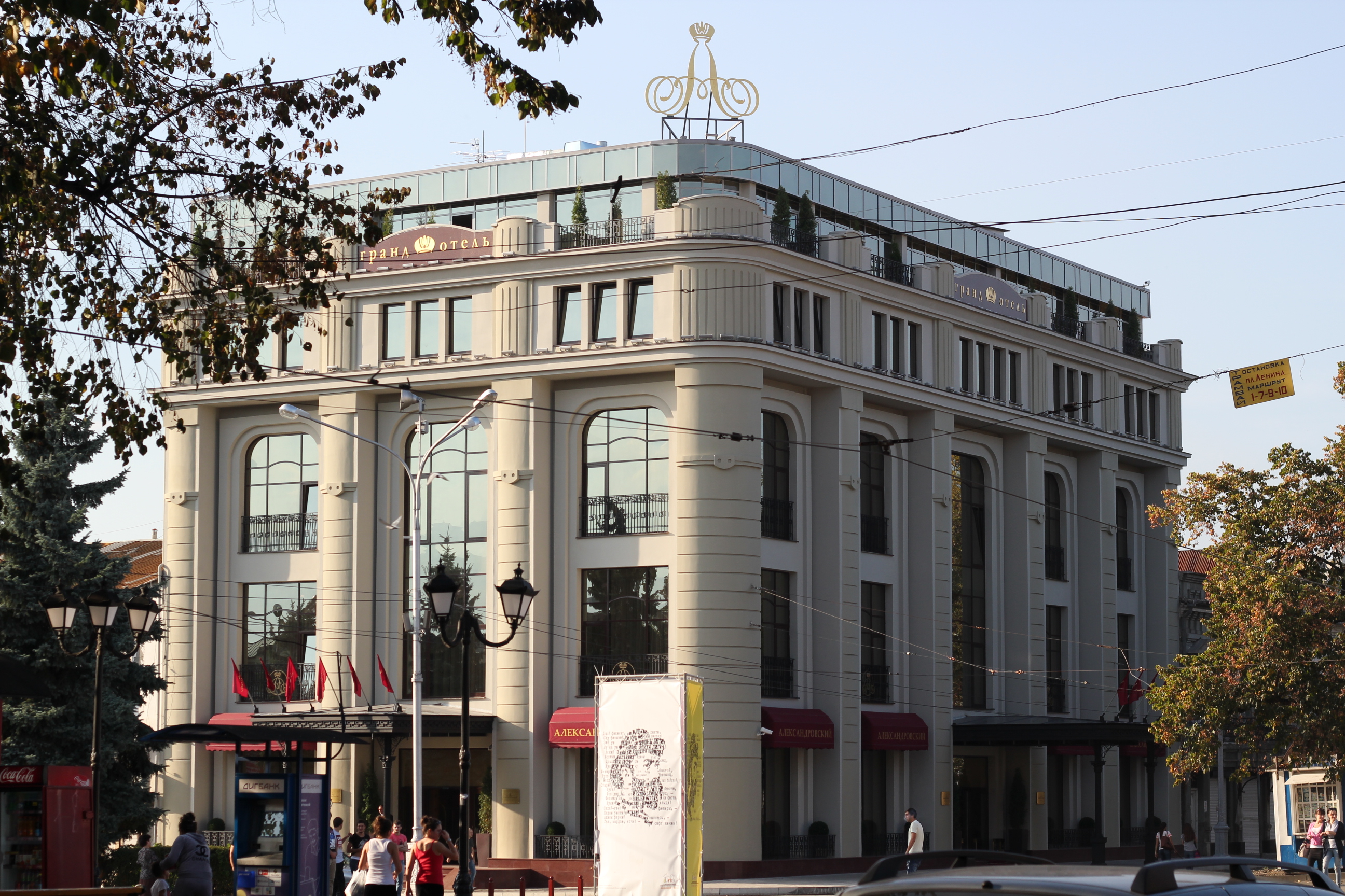 и к новой гостинице "Александровской". красивая, правда? на пивной ящик похожа, раньше такие были, пластиковые.