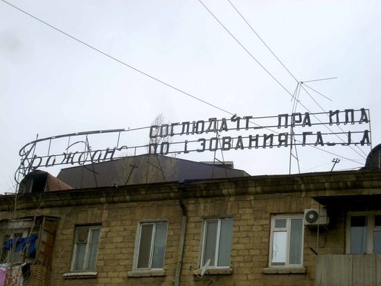 Каюсь - я сам когда-то безжалостно несколько таких шедевров советской агитации снёс на проспекте Гамзатова. Был молод и глуп - чего только ребята-монтажники нашей компании в бытность активного "офрмления и обновления облика" города не посносили((( Приношу свои публичные извинения за столь ревностное "служение" мэрии Махачкалы. К счастью, кое-что осталось почти не тронутым. На улице Коркмасова, между Гамида Далгата и Дахадева:
