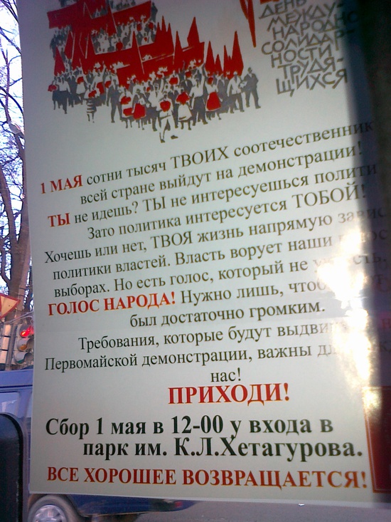 1. Сувенирная демократия - блогер soslan81 из Северной Осетии подробно и в сатирическом стиле рассказывает о проходивших во Владикавказе шествих 1 мая.