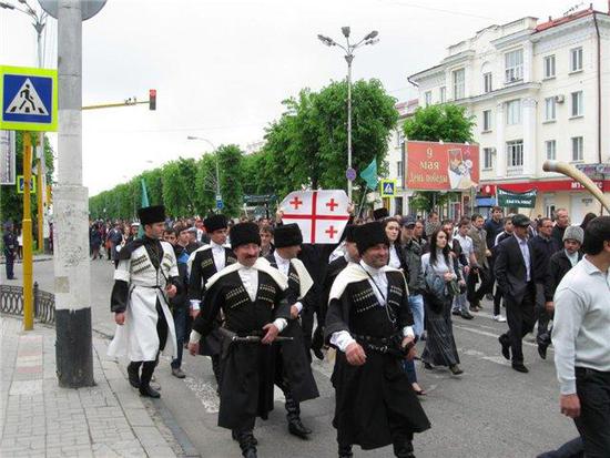 Грузинский флаг на улицах Нальчика... еще пару лет назад это и представить было невозможно