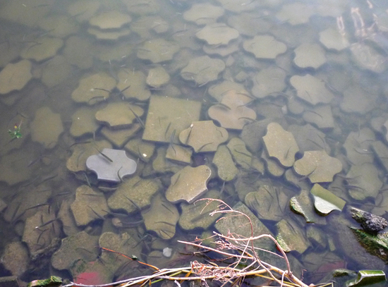 кто то, видима по причине своей гормональной неуровновешенности!покидал в озеро полно уличной плитки.