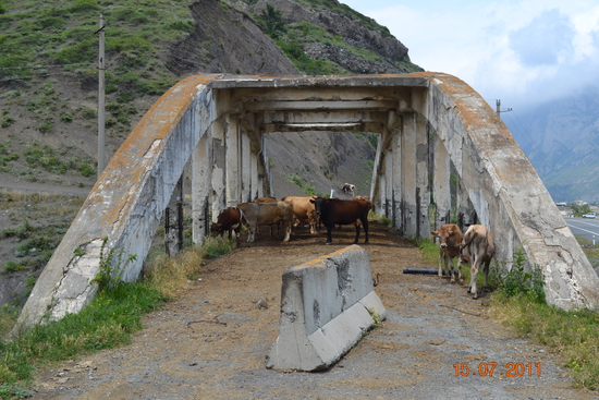 6. коровы на мосту - Алан Цхурбаев, Северная Осетия: "по-моему это красиво. старый мост в районе села Чми, что на военно-грузинской дороге, по которому сейчас ходят только коровы. но ведь среди них тоже, наверняка, есть любители красивого."