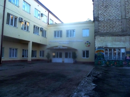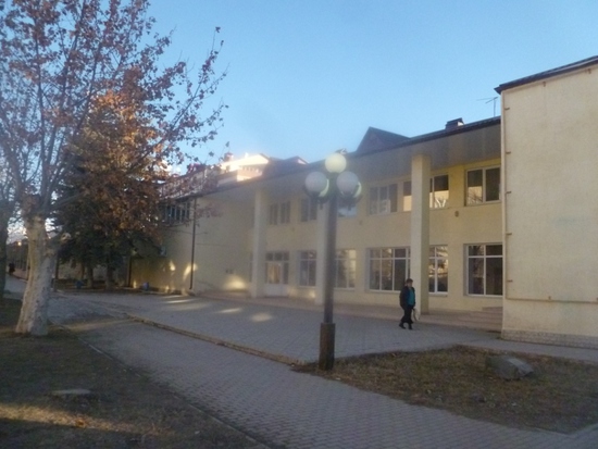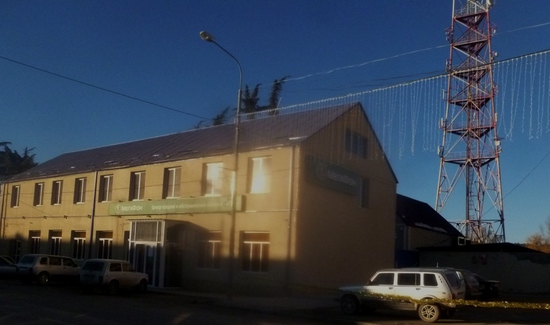 Радует огнями и вывеской наш Дворец Пионеров а ныне Дворец  Детского  Творчества. Вывески и на русском и на осетинском.