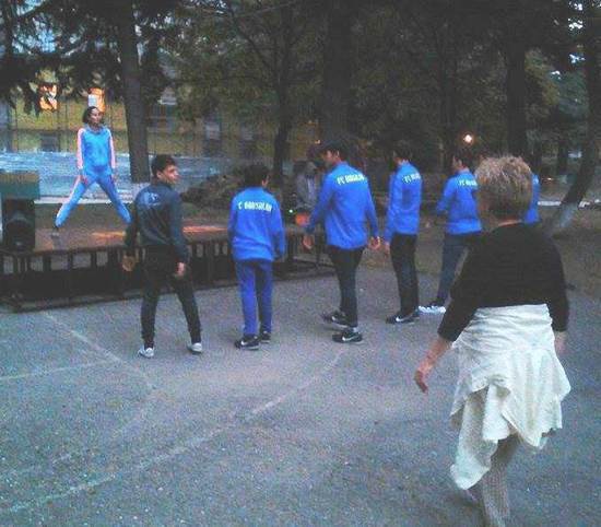 Сегодня вечером Радио Ир провела акцию «Двигайся». По замыслу организаторов желающие, какждую субботу, будут собираться на спортивной площадке "пионернского парка" и коллективно двигаться под руководством инструктора. В роли инструкторов тренера различных видов спорта, специалисты и просто занимающиеся фитнесом, бодибилдингом, йогой - в общем те кто умеет хорошо и правильно двигаться с пользой для здоровья. Сегодня это были каратист, футболист и стройная девушка.