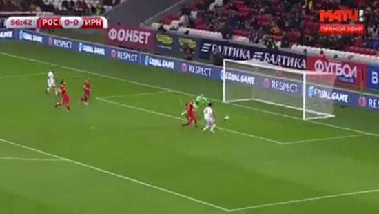 И вот иранец, бежит практически безпрепятственно, по всему полю, к воротам России.