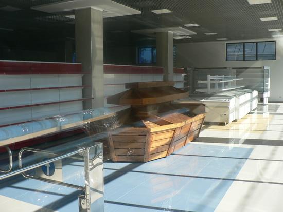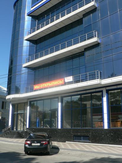 Но на этой гигантской стеклянно - металлической конструкции, находящейся на самом торговом перекрестке города, уже почти месяц висит "Мы открылись". Снаружи никаких признаков открытия не видно, даже пресловутая мини стоянка, явно несоответствующая такому объекту, пустует.