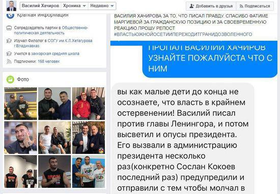 Мог такое сделать Василий Хачиров или нет, и по каким мотивам, если да - этим займется следствие. А вот югоосетинское блогерское сообщество и пользователи соцсетями, уже начали заниматься тем, что представляют Хачирова как жертву "режима", борца с коррупцией, вступившего в борьбу с чиновничеством и поплатившегося за это свободой.