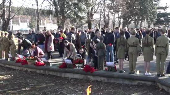 И на самом деле к Вечному огню были принесены таблички с венками. На них надписи «1943 год», или Отечественная Война1989-2008, или Афганская война. Но вот табличку, например, с надписью в «Война в Абхазии»,  я не заметил, как и не заметил «Война в Пригородном районе». Может, они и были, но в видео и фоторепортажах, они не видны.