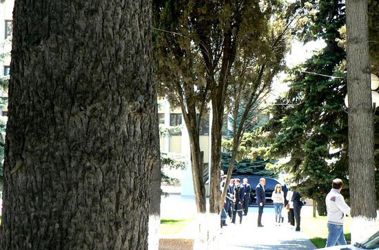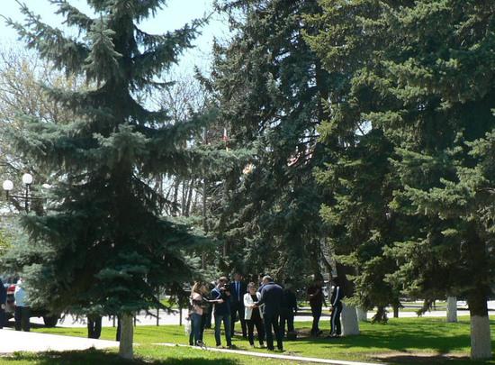 Сегодня страстная пятница, с утра решил ничего не писать, Но гуляя по скверу Коста, заметил суету и группу людей на зеленом газоне, подошел поближе и рассмотрел спортивного сложения ребят в черных костюмах застывших в типичных позах госохранников. Это они и были, а вот и Президент. Беседует с кем-то, под елкой. Я решил эту сцену, все таки сфотографировать. Потом еще с кем то. Кто-то из сопровождавших, взял грабли и стал убирать газон. Я решил, что это что-то типа субботника, но сегодня, вроде как, не положено заниматься работами связанными с землей. К тому же Анатолий Ильич, продолжал беседовать то с одним то с другим из допущенных к нему, вот к нему уже подошли мужчины сидевшие в сквере. Может это приём, такой, на свежем воздухе. Вечером посмотрим по ТВ, не зря же, все это время, возле Президента «стрекотала» камера. А из меня, папарацци, видно - никудышный.