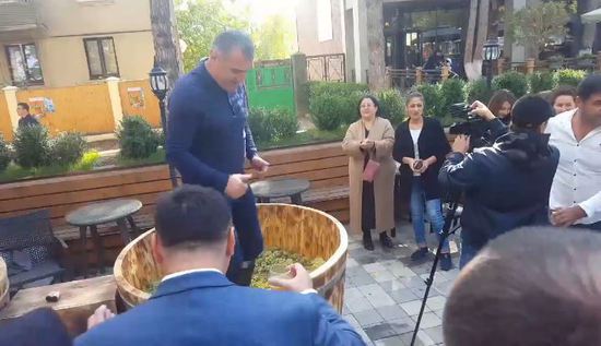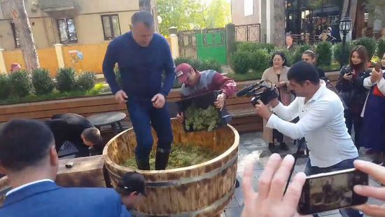 В кафе Винченцо виноделы Южной Осетии устроили праздник сбора урожая. А наш Президент его сделал его еще веселей, а потом, уже серьезно сказал, что, в последние годы виноделие принимает промышленный масштаб. и вина Алании выходят на зарубежные рынки.