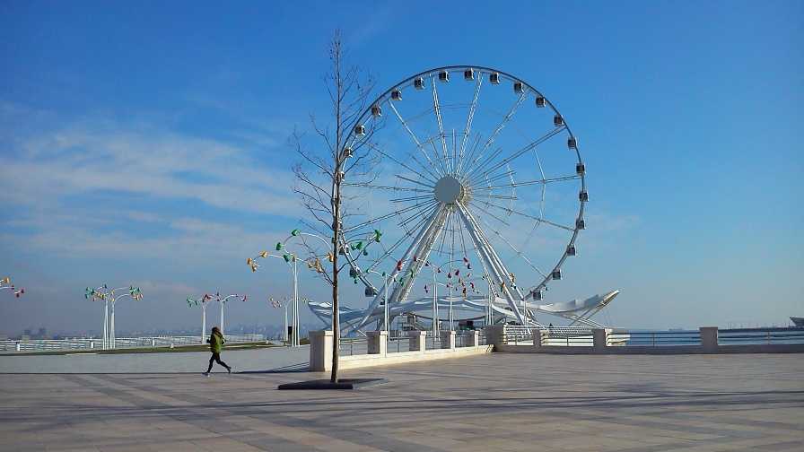 Морозным ясным днем, пройдя мимо замерзших фонтанов напротив Кабмина, спустился к морю и прогулялся по Новому Бульвару. Раньше на этом месте было черное нефтяное поле с вышками-качалками и сетью полуржавых труб. В море множество затонувших посудин. Лет пять назад вывезли черную почву и завезли новую, посадили деревья, установили освещение, скамейки и гигантское Колеса Обозрения, почистили море. Получилось 1,8 километровое продолжение старого и сильно обновленного бакинского Бульвара.
