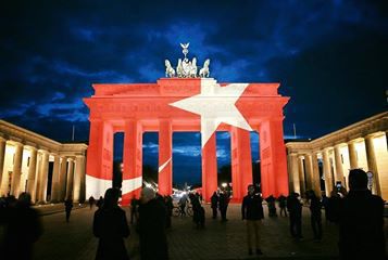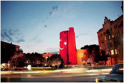 В Баку Девичья башня окрасилась в цвет турецкого флага. Так же поступили немцы с Брандергбурскими воротами