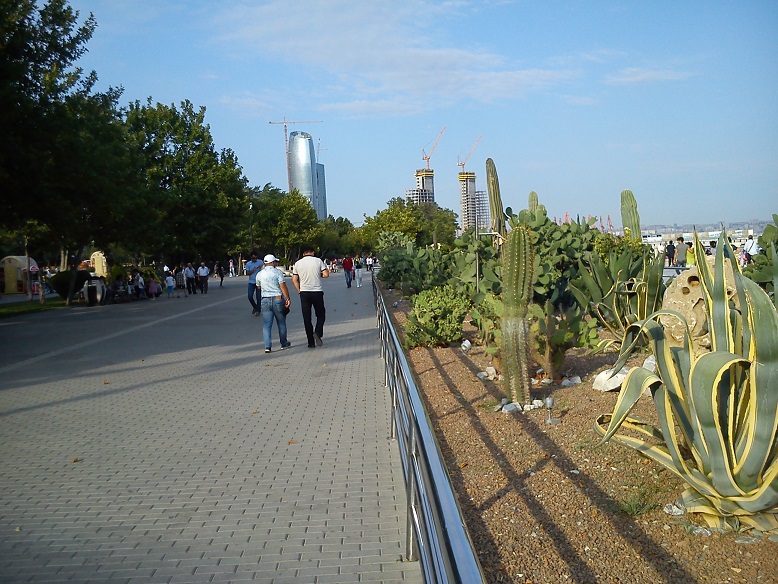 Арабы тоже молодцы, не остались в долгу и оставили на листьях кактусов на приморском бульваре свои арабские имена (надеюсь, это не призывы собираться в ИГИЛ!). Как раз кактусы на кактусной аллее зацвели и знать, что приезжий из самого Ирака, нам - бакинцам очень полезно. Азербайджанцы тоже, желая показать что они грамотные люди, оставили свои надписи.