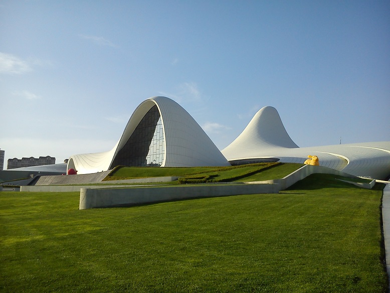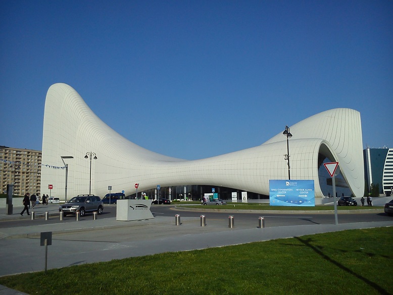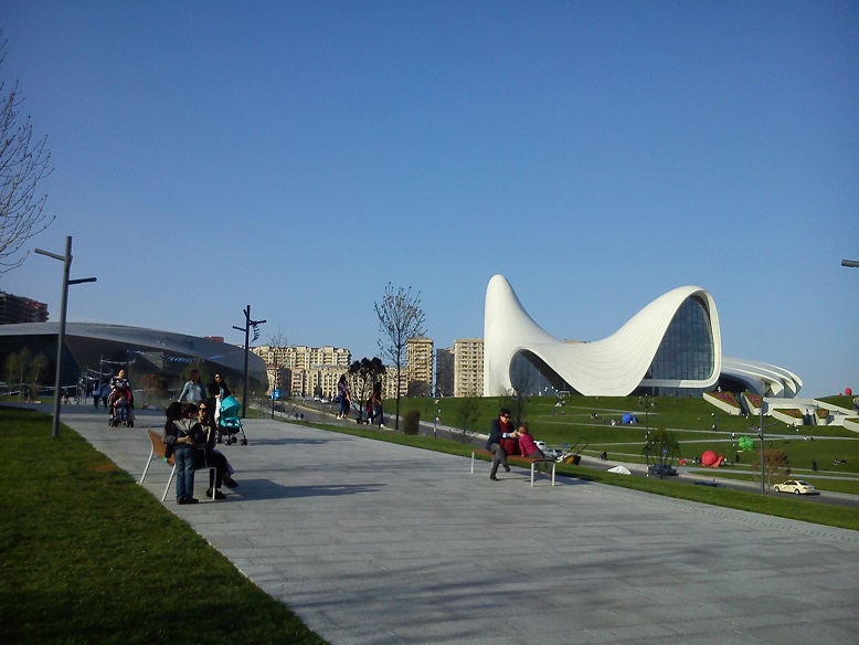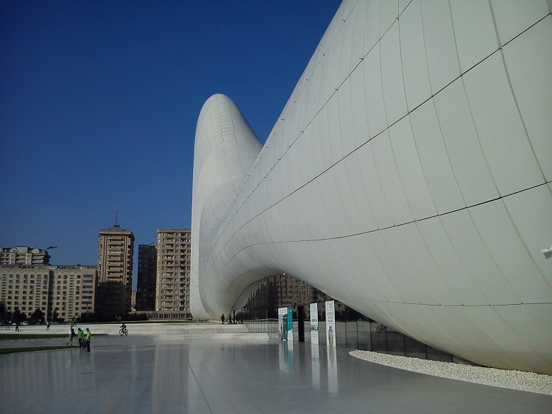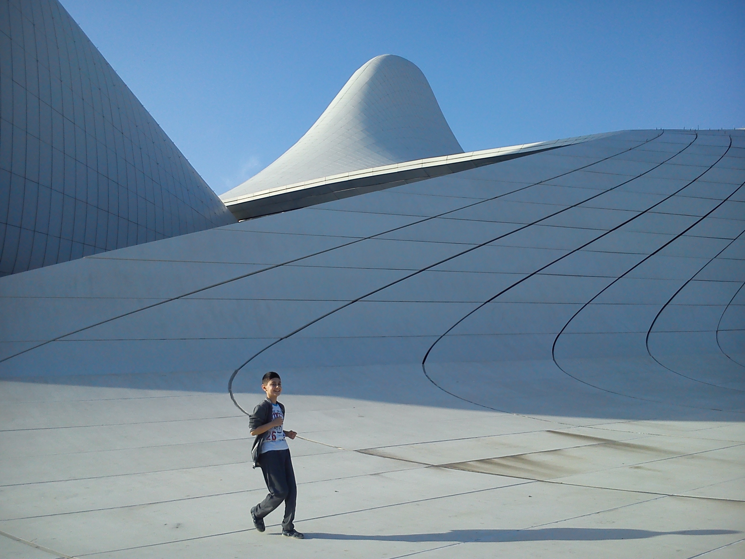 К моему стыду я впервые пришел сюда в пятницу. До этого обозревал, проезжая мимо по шоссе где остановиться нереально из-за потока автомобилей, ну и в этой части Баку я не бываю. А в пятницу пригласили в Министерство образования, а Центр рядом, и я к моему стыду отправился осматривать уникальное архитктурное здание без углов, которое видели все туристы, приезжавшие в Баку. А я до сих пор обозревал Центр в многочисленных видеорассказах туристов.