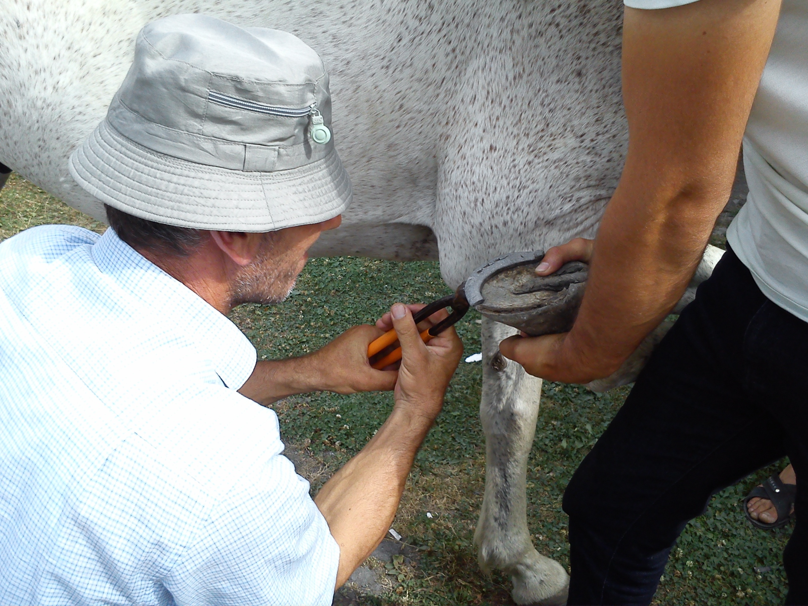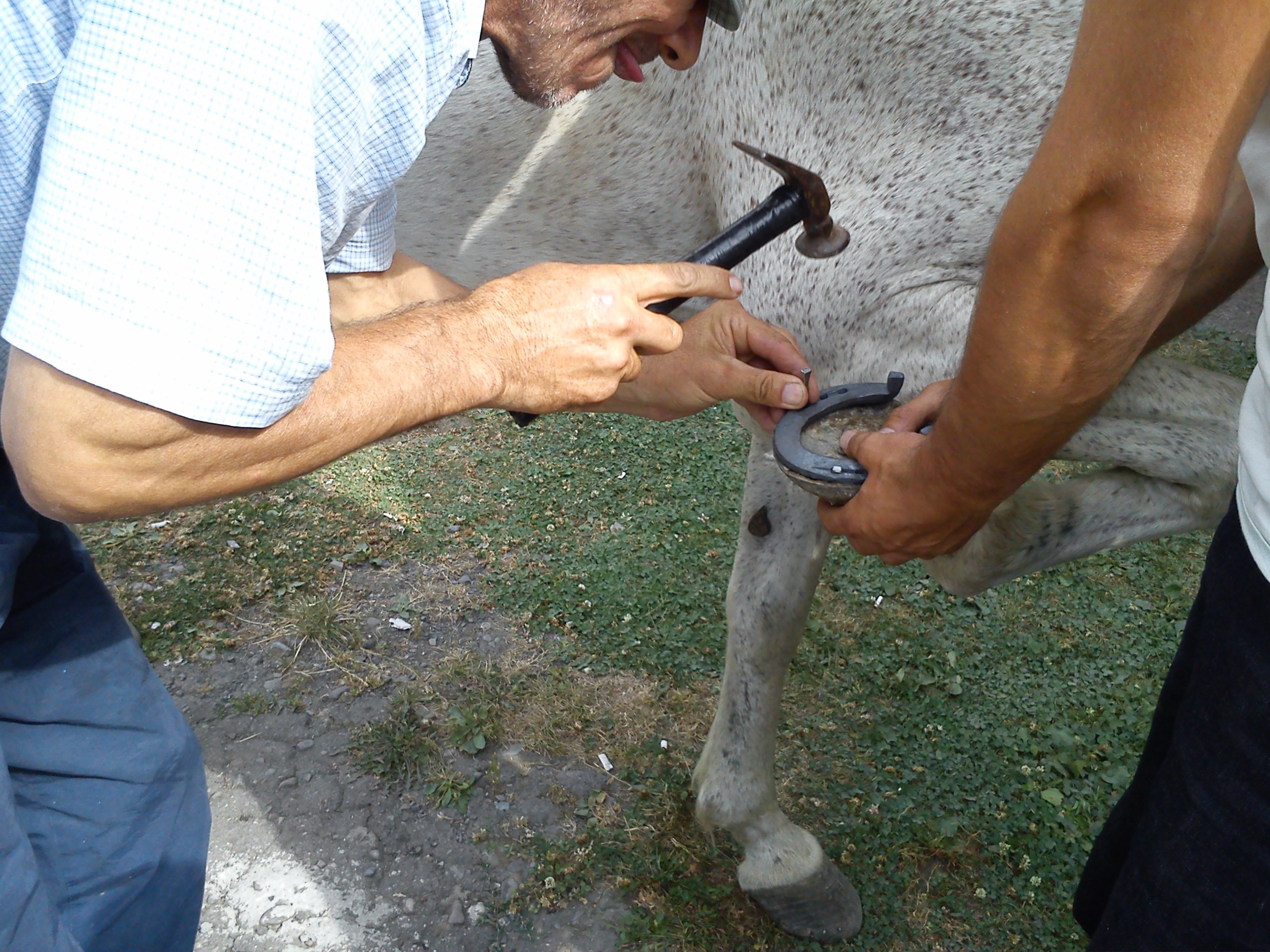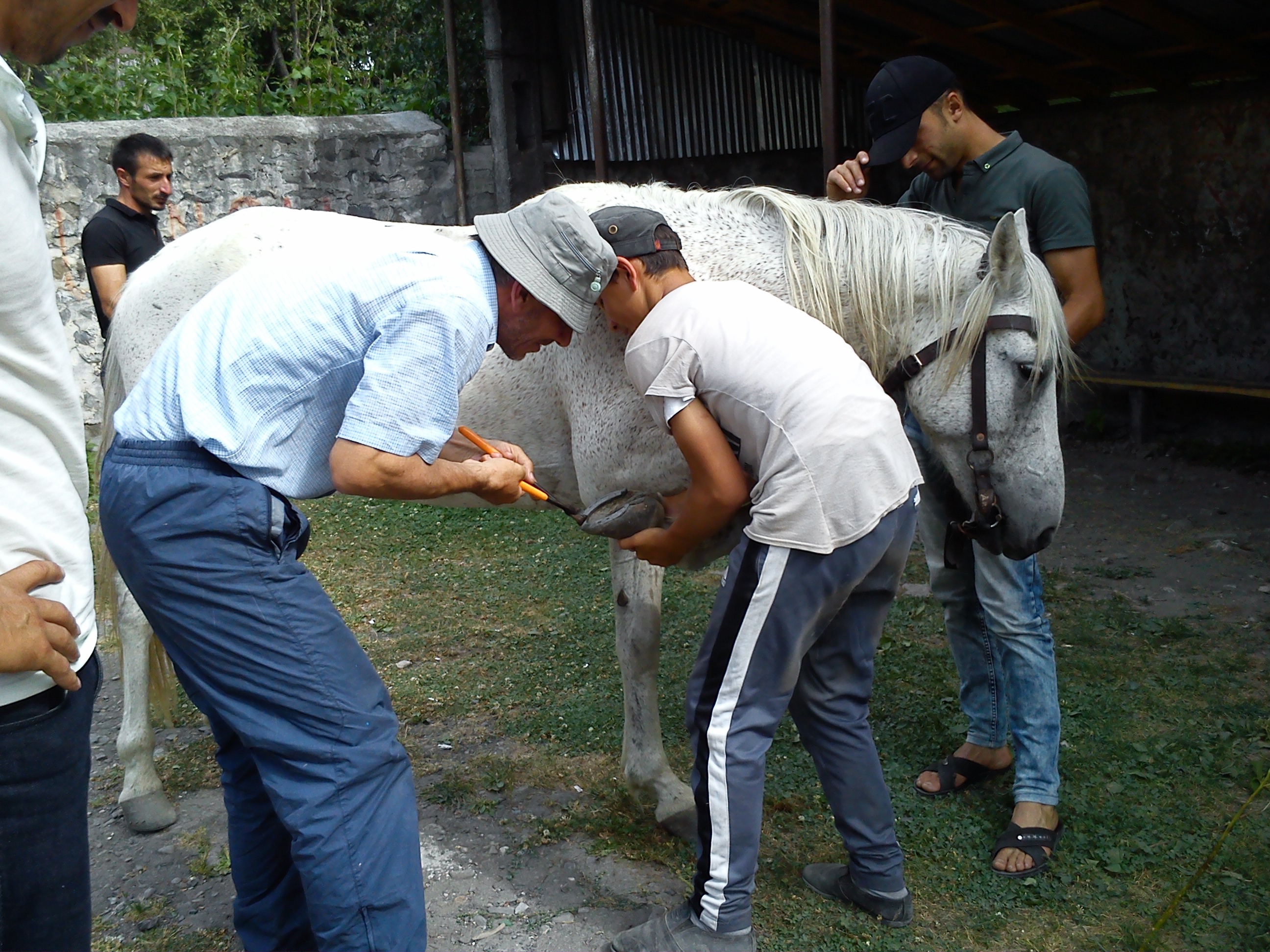 А сосед Намика - фермер Шахмардан сегодня подковывал белого коня.  Технология налбанда (не путать с Налбандяном - просто у армян фамилии созданы из слов ненавистного им тюрского языка. Нал - подкова, налбанд - подковочник, подковывающий) за тысячу лет не изменилась. Те же подковы, такие же специальные гвозди, инструменты и способ работы.
