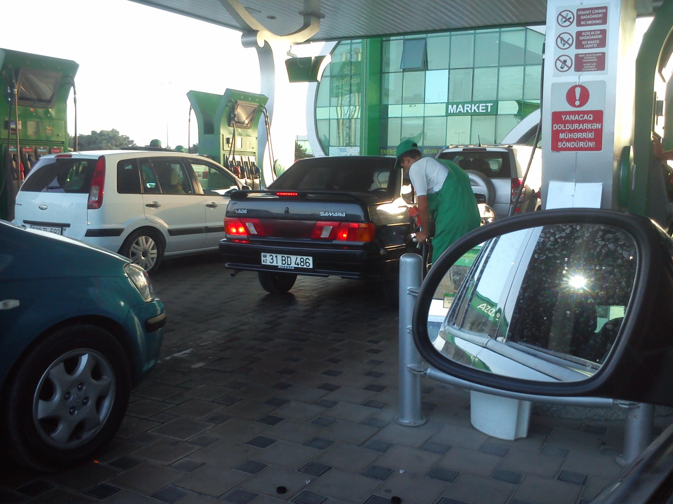 Идут обсуждения предыстории освобождения. Версию ландромата и санкций я сказал, к ней примыкает версия борьбы двух мегасил в окружении президента, якобы по указанию одной из сил - "пятой колонны",  Мехман осужден  как противник этой силы. Что  за колонна?  А вот, я поймал на бензоколонке одного колониста, видите "Ладу-Самару? У нее под азербайджанским регистрационным номером написано Rossia. На передном плане боковое зеркало, в нем вспышка от моей камеры.