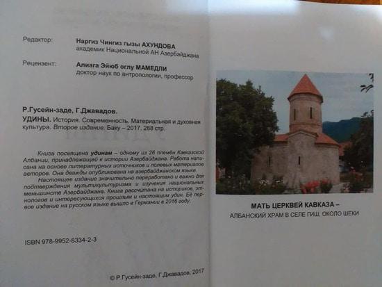 В Баку на русском языке опубликована интересная для кавказоведов и любителей кавказской истории книга -  научное исследование "Удины. История, современность, материальная и духовная культура" историков Рауфа Гусейн-заде и Гамаршаха Джавадова. Книга посвящена удинам - одному из 26 племен Кавказской Албании, принадлежащей к истории Азербайджана. Работа написана на основе научных источников и полевых материалов авторов.