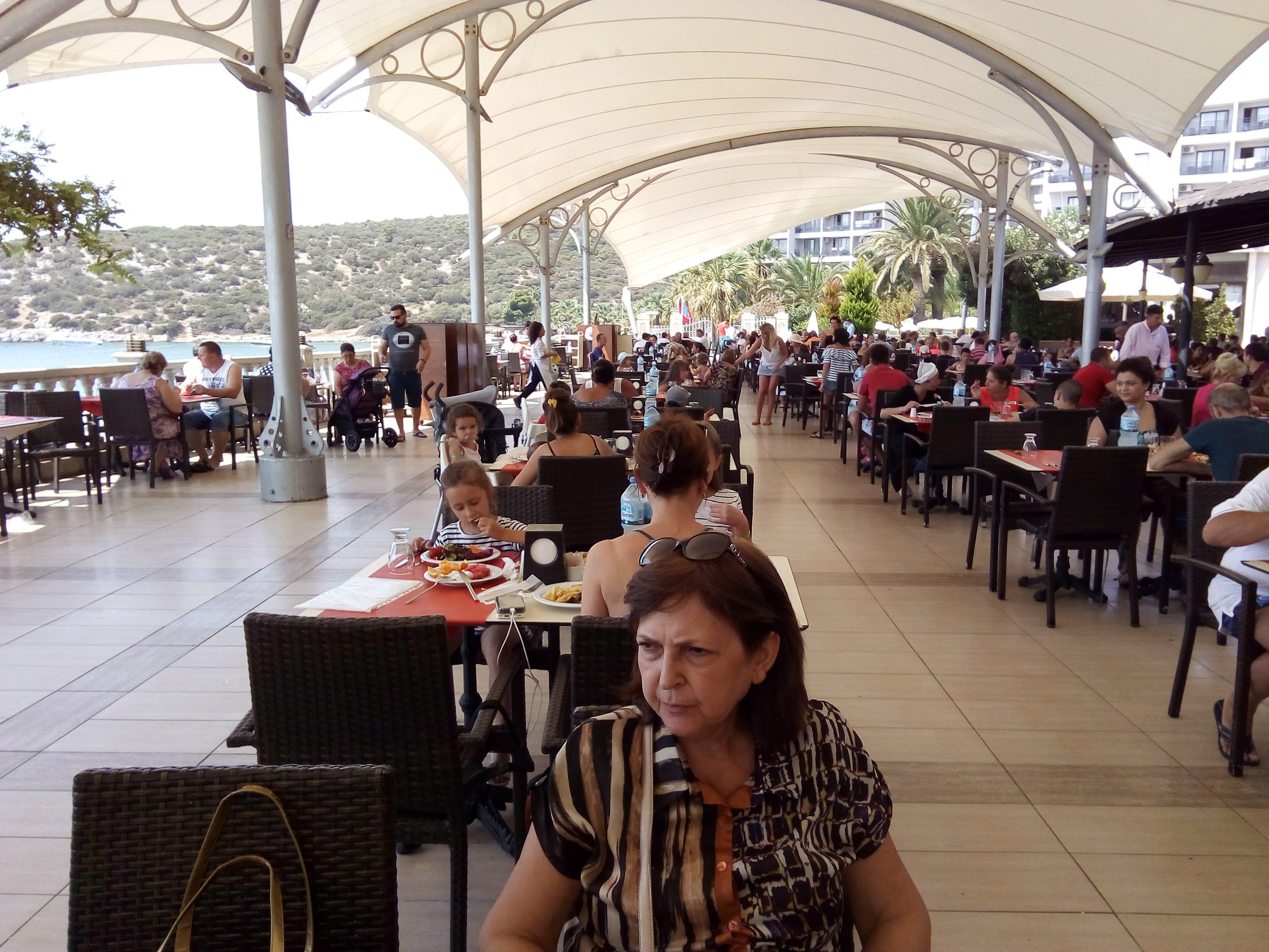 Конечно отдых в Турции  не место для желающих похудеть. Ззнаменитые столы " Всё включено_  забитые едой причём некоторые блюда готовят на глазах у отдыхающих Это надо видеть как толпы туристов из разных стран бегают вокруг столов судорожно хватая и забивая тарелки всякой снедью  пиво выдается бесплатно в неограниченном количестве  также как и любые другие напитки  Разумеется я тут заливаюсь домовым низко алкогольным пивом . Так же поступают  русские  но хочу отметить важное и знаменитых по российским телеканалам экземпляров кричащих  Барнаул Тагил и прочие Сибирские Города Здесь этих людей нет да и быть не может потому что любой хулиган будет быстро схвачен  частный полицией работающий в отеле передан государственной полиции дежуряшей за периметром . Теперь о вкусе еды .  вкуса еды здесь нет  . Пищи много  можно забить живот  при этом ничего не ощущаетшь. Удовольствие ноль. фрукты  как говорится пластмассовые В конце скажу опять немного о технической части моих постов. поскольку  я здесь работаю через смартфон а это  очень неудобно то я наловчился наговаривать текст в Google который за меня пишет его  в пост  . потом я редактирую  ошибки машины  . но в любом случае  текст получается неряшливой учтите пожалуйста мои трудности