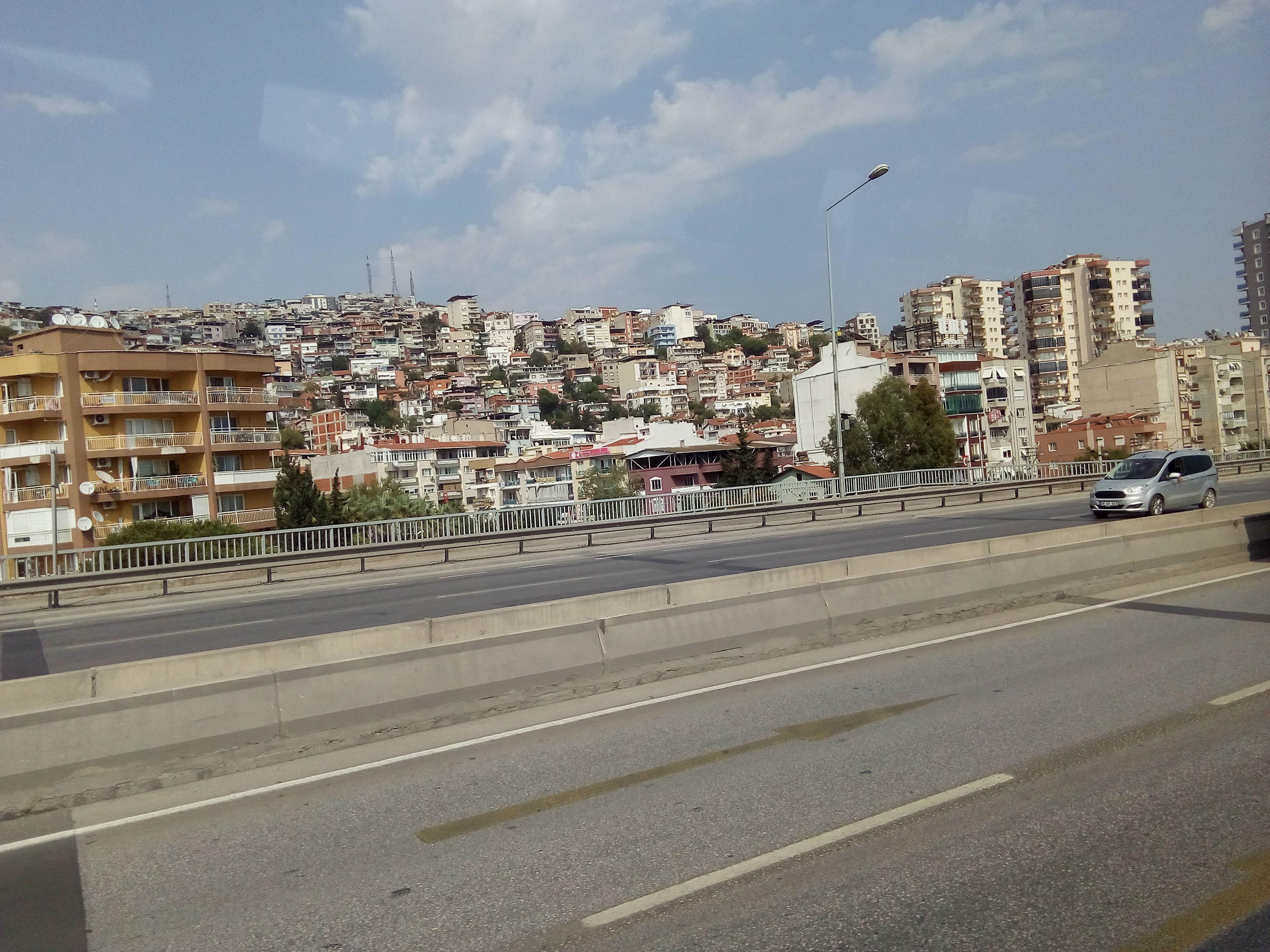 Сегодня отправился на автобусе смотреть город Измир - в греческое время Смирна. Гигантский город в нём 4 млн жителей . В античное время назывался Смирна потом в результате особенностей турецкого языка Смирна превратилась в Измирна, а потом современный Измир. В автобусе за мной спали чернокожие люди. Вначале я почувствовал себя рабовладельцем везущим живой товар. Когда узнал что они британцы больше так не думал.