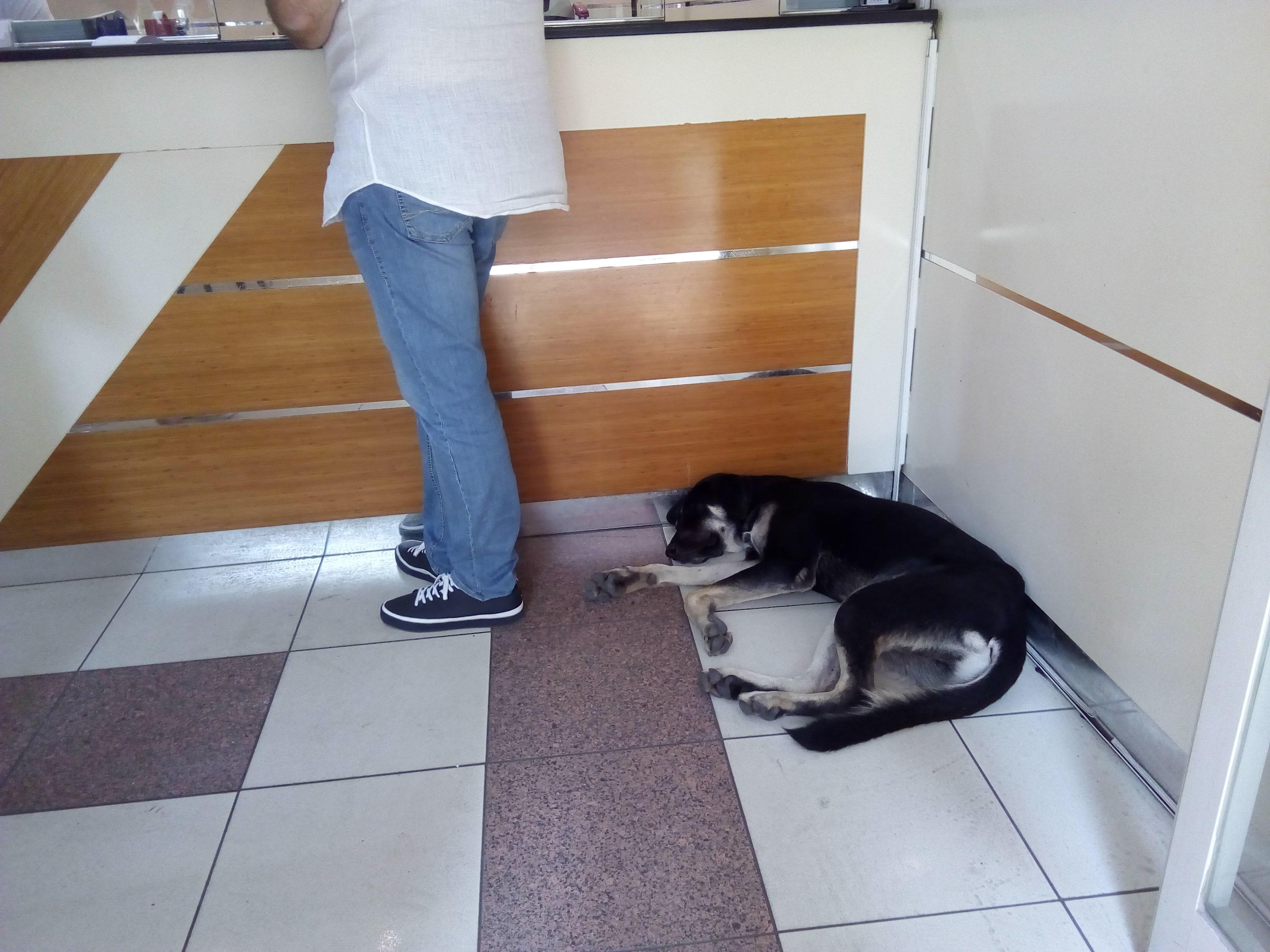 Крупные сытые собаки спят в городе там, где им хочется, никто псов не трогает. Совсем как коровы в Индии. В обменном пункте лежал такой пес, люди переступали через него, чтобы не потревожить лорда. Вы видите его на фото. Рядом с отелем женщина поила крупную старую собаку минеральной водой, наливая ее в пластиковое блюдце. Пес смачно чавкал без выражения благодарности. Подходил ко мне нюхал меня, я прям сжался, и молча отошел.