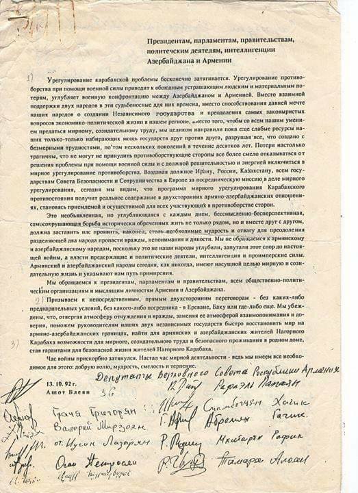 13 октября1992 г. Верховный совет Армении обратился к Азербайджану с просьбой начать мирные переговоры без всяких предусловий и территориальных претензий. Тогда наша армия хорошо прижала армянскую и ей пришлось просить мира. Это и есть формула "принуждения к миру", которую надо применить к нынешним властям Армении.