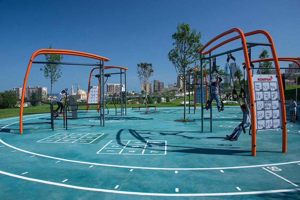 В Баку шутят по поводу названия нового парка - Центрального. Так же называется парк в Нью-Йорке, но американский старый, деревьев много и большие, так что настоящий парк. А тот который я показываю открыт на этой неделе в среду, на месте разрушенного жилого массива в Баку (советский). О разрушении "советской" в КУ писали много. Теперь показываю - ради чего снесли старый квартал